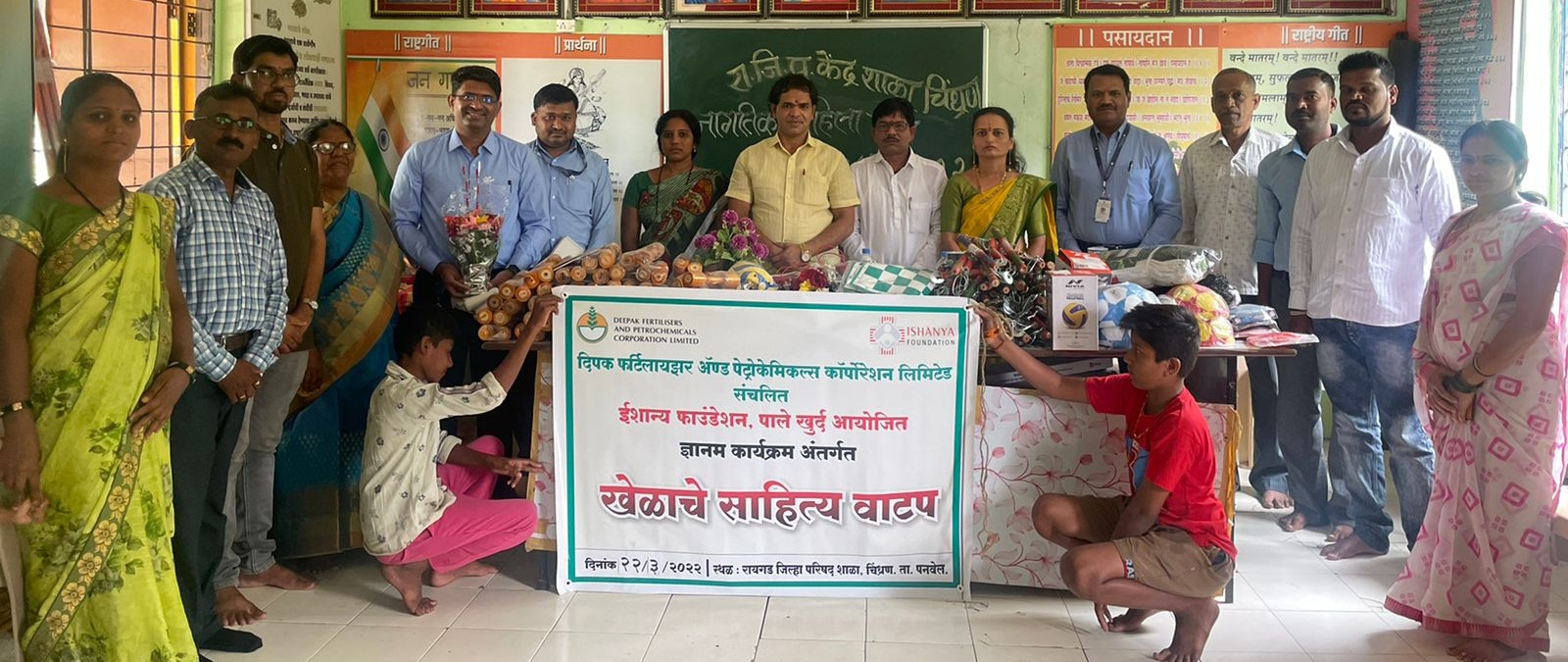 दिपक फर्टीलायझर कंपनी संचलित ईशान्य फाउंडेशन पाले खुर्द यांच्या माध्यमातून व्यवसाय साहित्य, मुलांना खेळणी वाटप