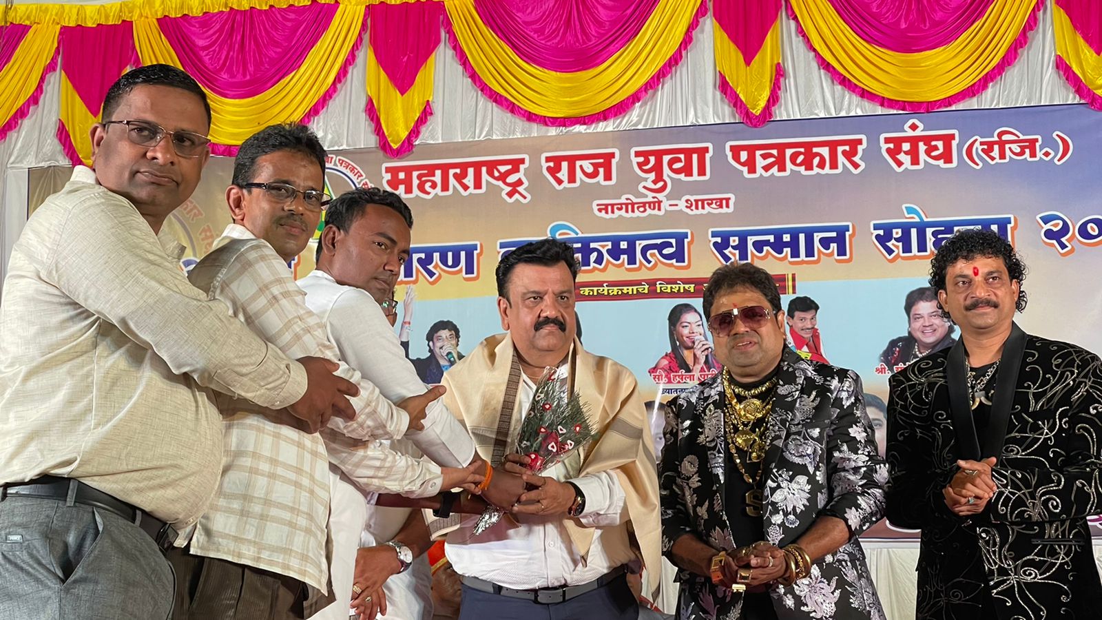 नागोठणे येथे महाराष्ट्र राज युवा पत्रकार संघाच्या वतीने अनन्यसाधारण व्यक्तिमत्व सन्मान सोहळ्याचे आयोजन महाराष्ट्र राज युवा पत्रकार संघाचे प्रदेशाध्यक्ष राज वैशंपायन व जिल्हा परिषद सदस्य किशोर जैन यांच्या मार्गदर्शनाखाली आठवडा बाजार पटांगणामध्ये संपन्न झाला.