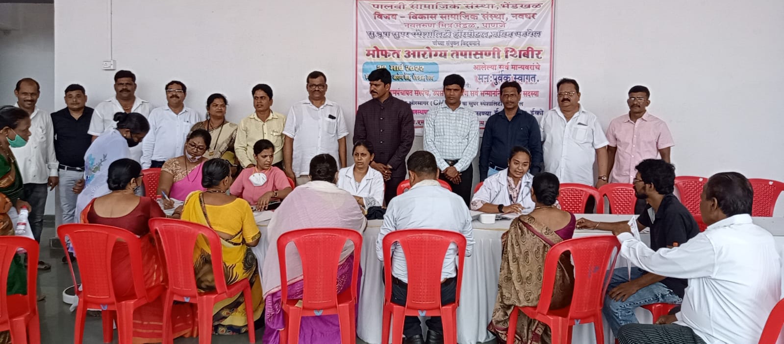 पालवी सामाजिक संस्था, विजय-विकास सामाजिक संस्था, नवतरुण मित्र मंडळ आणि सुश्रूषा सुपर स्पेशालिटी हाॅस्पीटल डॉक्टर राजेंद्र शिरसागर (CMO),कॅम्प व्यवस्थापक रत्नमाला पाबारेकर यांच्या संयुक्त विद्यमाने मंगळवार दिनांक 29 मार्च 2022 रोजी प्राथमिक आरोग्य केंद्र, भेंडखळ येथे “मोफत वैद्यकीय चिकित्सा शिबीर” आयोजित करण्यात आले होते .