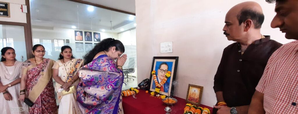 भारतीय राज्यघटनेचे शिल्पकार, भारतरत्न महामानव डॉ.बाबासाहेब आंबेडकर यांच्या जयंतीनिमित्त त्यांच्या प्रतिमेला पुष्पहार अर्पण करून नगराध्यक्षा सुवर्णा जोशी यांनी आज नगरपरिषद कार्यालयात अभिवादन केले. त्यानंतर सर्वांनी डॉ. बाबासाहेब आंबेडकर यांच्या पुतळ्या समोर अभिवादन केले.