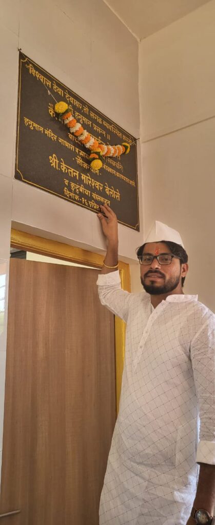 सदरील काम हनुमान मंदिर जयंतीच्या निमित्ताने करण्यात आले, हनुमान मंदिर गाभाऱ्याचे अतिशय देखणे झालेले काम पाहून गावातील ग्रामस्थांकडून व परिसरातील नागरिकांकडून कामाचे कैतुक केले आहे. या कामाचे हनुमान जयंतीचे औचित्य साधून केतन बेलोसे यांच्या हस्ते लोकार्पण संपन्न झाले, याप्रसंगी गावातील ग्रामस्थ मोठ्या संख्येने उपस्थित होते.