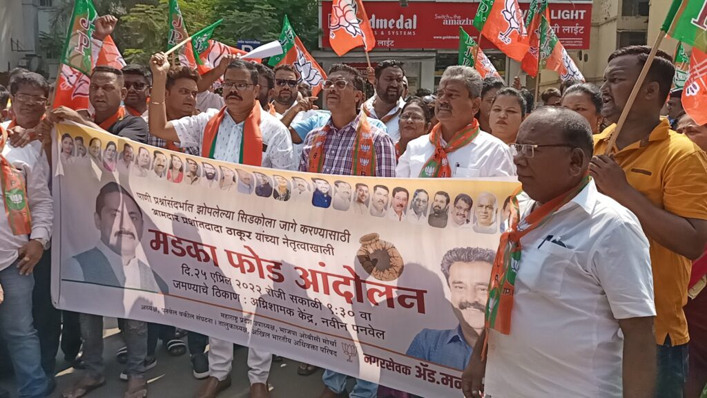 पनवेल परिसरातील पाणी प्रश्नासंदर्भात झोपलेल्या सिडकोला जागे करण्यासाठी भारतीय जनता पक्षातर्फे पनवेल महापालिका सभागृह नेते परेश ठाकूर यांच्या नेतृत्वाखाली मडका फोड आंदोलन करण्यात आले.