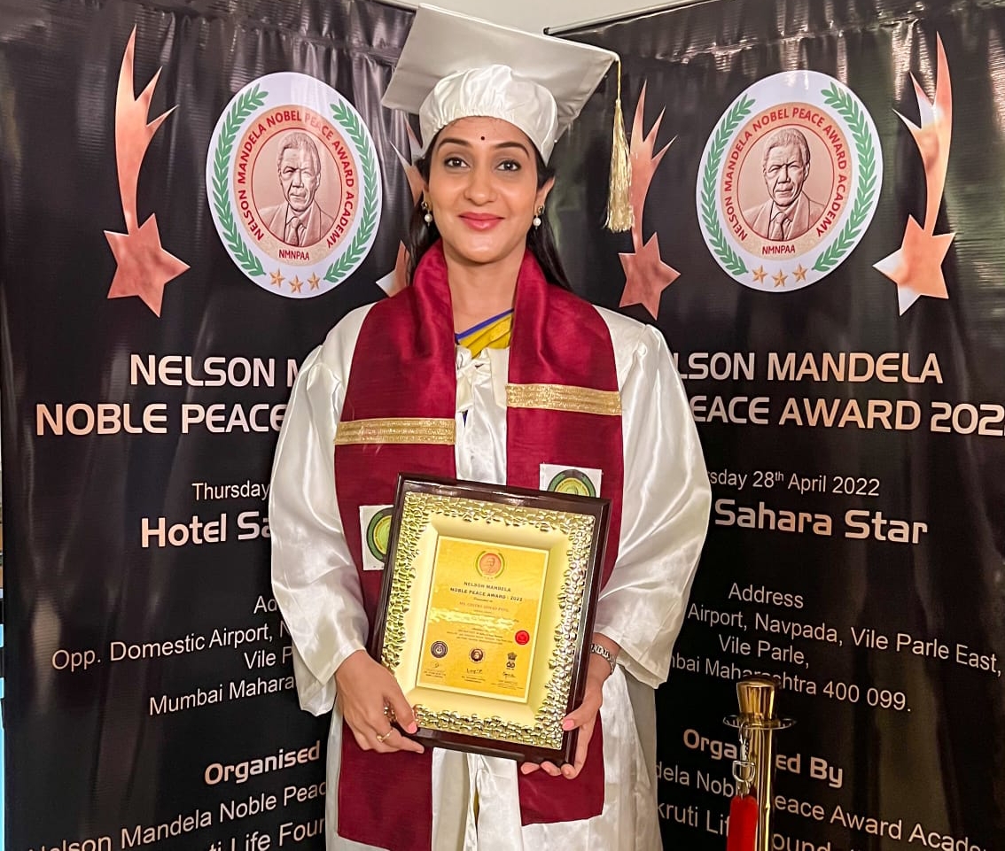 सौ. चित्रा आस्वाद पाटील नेल्सन मंडेला नोबल पीस पुरस्काराने सन्मानित
