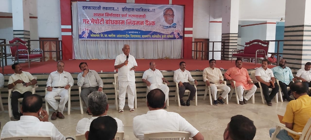 शहरातील महात्मा ज्योतिबा फुले सभागृहात लोकनेते दि. बा. पाटील आंतरराष्ट्रीय विमानतळ नामकरण सर्वपक्षीय कृती समितीच्या वतीने आयोजित करण्यात आलेल्या या बैठकीस समितीचे अध्यक्ष दशरथ पाटील, भाजपचे उत्तर रायगड जिल्हाध्यक्ष आमदार प्रशांत ठाकूर, आमदार महेश बालदी, भाजपचे तालुकाध्यक्ष अरुणशेठ भगत, समितीचे संतोष केणे, जे. डी. तांडेल, दशरथ भगत, राजाराम पाटील, २७ गाव समितीचे अध्यक्ष नंदराज मुंगाजी, रुपेश धुमाळ, नगरसेवक मनोज भुजबळ, मनोहर म्हात्रे, युवा नेते दशरथ म्हात्रे, राजेश गायकर, विनोद म्हात्रे, प्रभाकर जोशी, तसेच पदाधिकारी व प्रकल्पग्रस्त मोठ्या संख्येने उपस्थित होते.