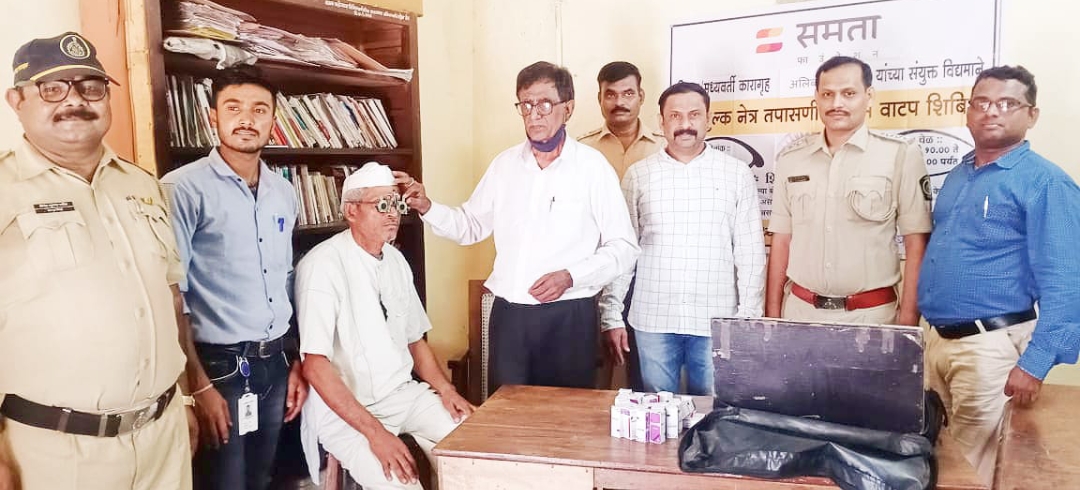 समता फाऊंडेशन व जिल्हा मध्यवर्ती कारागृह अलिबाग यांच्या संयुक्त विद्यमाने बुधवार दि.18 मे रोजी मोफत नेत्र तपासणी व चष्मे वाटप शिबीर पार पडले.या शिबिरात डोळ्यांची तपासणी करून कारागृहातील बंदिजनांनी उत्स्फूर्त प्रतिसाद दिला.