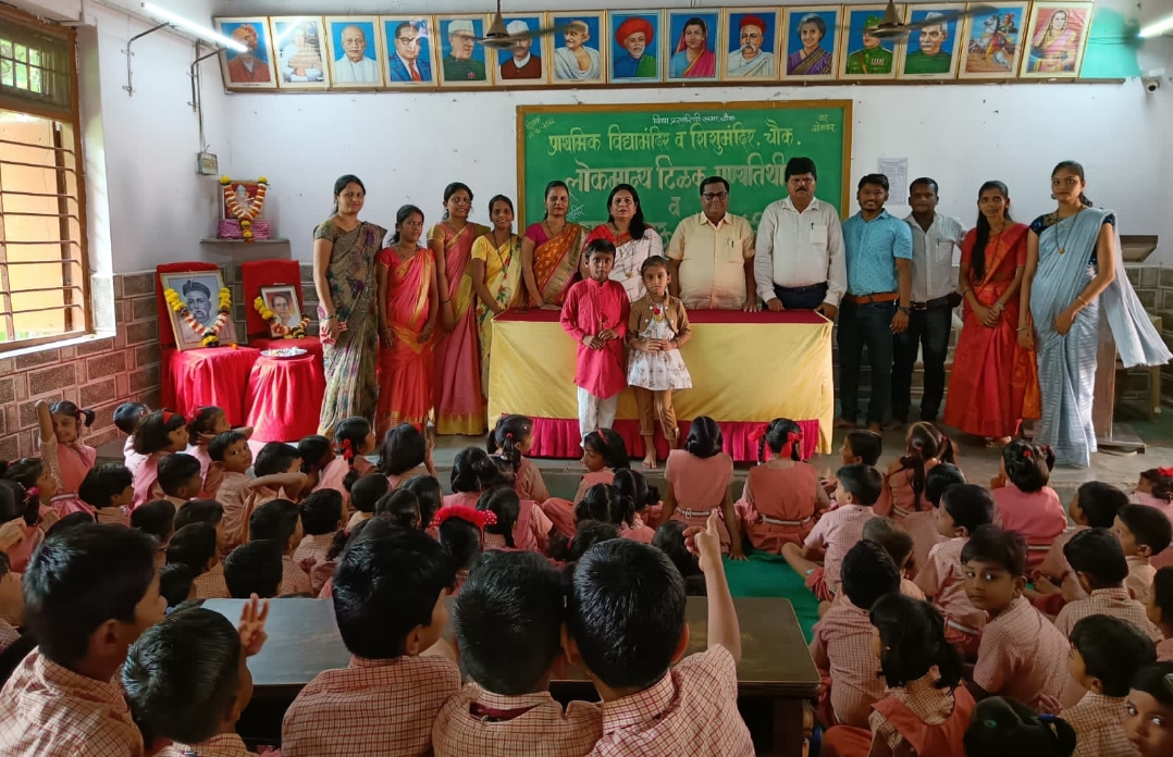 कार्यक्रमाच्या अध्यक्षा तसेच प्राथमिक विद्यामंदिर व शिशुमंदिराच्या अध्यक्षा शोभाताई देशमुख यांनी लोकमान्य टिळक यांच्या प्रतिमेचे पूजन केले तसेच संस्थेचे सेक्रेटरी योगेंद्र शहा यांनी लोकशाहीर अण्णाभाऊ साठे यांच्या प्रतिमेचे पूजन केले. कार्यक्रमाचे प्रास्ताविक देवानंद कांबळे सर यांनी केले. लोकमान्य टिळक व लोकशाहीर अण्णाभाऊ साठे याविषयी माहिती अतिशय सोप्या पद्धतीने मुलांना प्रिती मॅडम यांनी सांगितली.