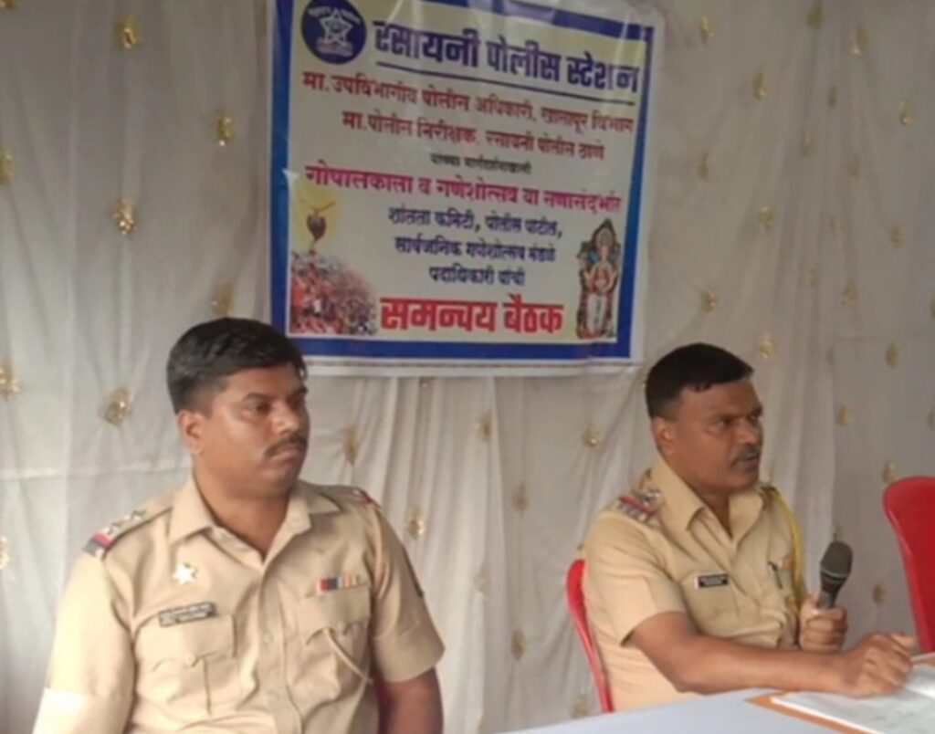 यावेळी शांतता कमिटी पदाधिकारी व सदस्य, पोलिस पाटील, श्री गणेशोत्सव मंडळाचे पदाधिकारी यांच्या समस्या जाणून निराकरण करण्यात आले.यावेळी वरिष्ठ पोलीस निरीक्षक कैलास दादाभाऊ डोंगरे, पोलिस उपनिरीक्षक धनाजी काळे, पोलिस नाईक विशाल झावरे यांच्यासह पोलिस कर्मचारी व रसायनी परिसरातील नागरिक उपस्थित होते.