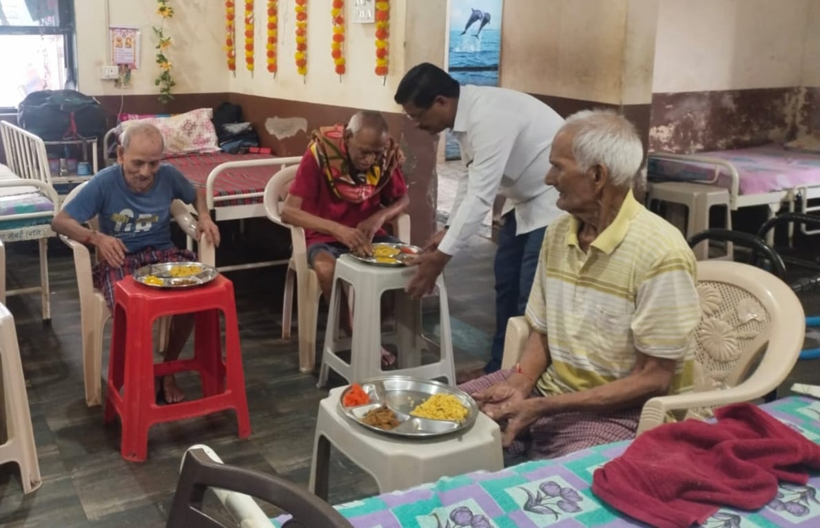 नितीन पाटील यांच्या वाढदिवसानिमित्त करुणेश्वर वृद्धाश्रमात जाणीव एक सामाजिक संस्थे मार्फत अन्नवाटप