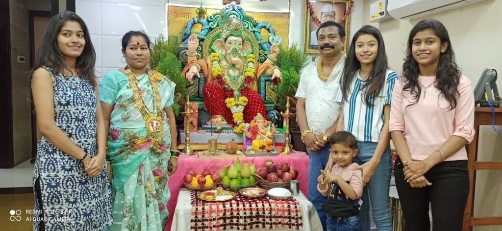 मागील अनेक वर्षे आपल्या परंपरेनुसार दहा दिवसांसाठी आपल्या निवासस्थानी गणेशोत्सव साजरा करतात मात्र गेली दोन वर्षे कोरोना काळ असल्यामुळे गणेशोत्सव साजरा करता आला नाही परंतु यावर्षी मोठ्या आनंदाने आणि उत्साहाने साजरा करण्यासाठी त्यांनी इंको फ्रेंडली लालबागच्या राजाची प्रतिकृती उभारली.