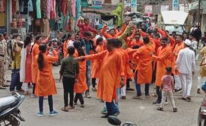 मिरवणुकीत नाचत असलेले पोलीस कर्मचारी