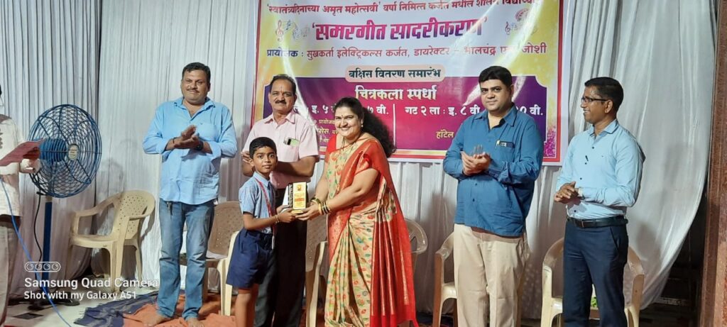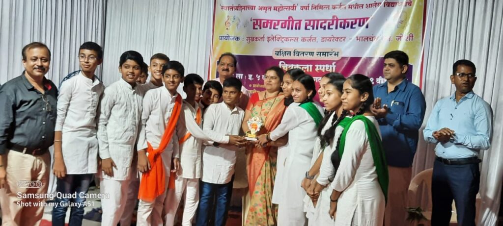 सार्वजनिक गणेशोत्सव मंडळ , कर्जतच्या वतीने गणेशोत्सवात स्वातंत्र्य दिनाच्या अमृत महोत्सवी वर्षाचे औचित्य साधून शालेय विद्यार्थ्यांसाठी चित्रकला स्पर्धा व समरगीत सादरीकरणाचे आयोजन कपालेश्वर मंदिराच्या सभागृहात करण्यात आले होते. यावेळी विद्यार्थ्यांनी मोठ्या संख्येने उपस्थिती दर्शवून उस्फुर्त प्रतिसाद दिला.