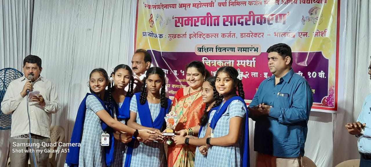 पारितोषिक वितरण समारंभ नगराध्यक्ष सुवर्णा जोशी यांच्या हस्ते आयोजित करण्यात आला होता. याप्रसंगी माजी नगरसेवक भालचंद्र जोशी, जेष्ठ पत्रकार विजय मांडे, संतोष पेरणे, मंडळाचे अध्यक्ष आशिष गोखले व्यासपीठावर उपस्थित होते. समरगीत सादरीकरण करणाऱ्या शाळांना सन्मानचिन्ह देऊन गौरविण्यात आले तर चित्रकला स्पर्धेत यशस्वी झालेल्या विद्यार्थ्यांना सन्मानचिन्ह व रोख पारितोषिके देऊन सन्मानित करण्यात आले.