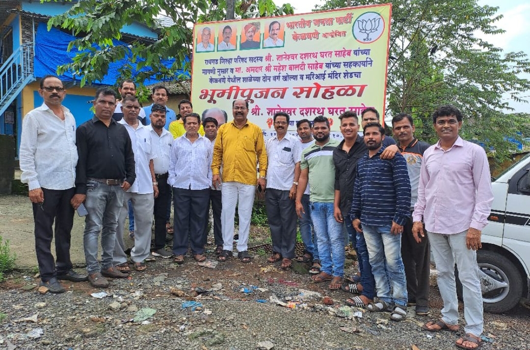 केळवणे शाळा वर्गखोली आणि मरीआई मंदीर शेड तयार करणे या दोन कामांचे भूमीपूजन