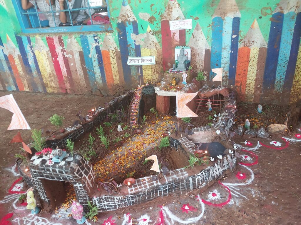 इयत्ता 2 ते 7 वी पर्यंतच्या मुलांनी गटनिहाय सहभाग घेऊन स्वतःच्या संकल्पनेतुनच शिवरायांच्या स्वराज्यातील गडकिल्ल्यांच्या प्रतिकृती तयार केल्या. यामध्ये शिवनेरी, रायगड, प्रतापगड, सिंहगड, मुरुड जंजिरा,कर्नाळा,कोंढाणा इ.किल्ले मुलांनी तयार केले होते.