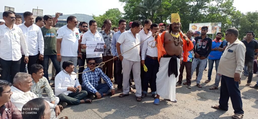 या दरम्यान पेण मधील हजारो नागरीकांनी महामार्ग एक तास रोखून धरल्यामुळे महामार्गावरील दोन्ही बाजूकडील वाहतूक थांबवण्यात आली होती.महामार्गावर मानवी साखळी करुन बसलेल्या आंदोलनामध्ये गडब येथील तरुण सुशिल कोठेकर हे यमाच्या पेहरावात रस्त्यावर आंदोलनात सहभागी झाल्यांने हा रस्ता घातक झाला असून मृत्यूला कारणीभूत ठरत आहे.त्यामुळे याची तातडीने दुरुस्ती करावी अशी मागणी आंदोलनकर्त्यांनी केली आहे.