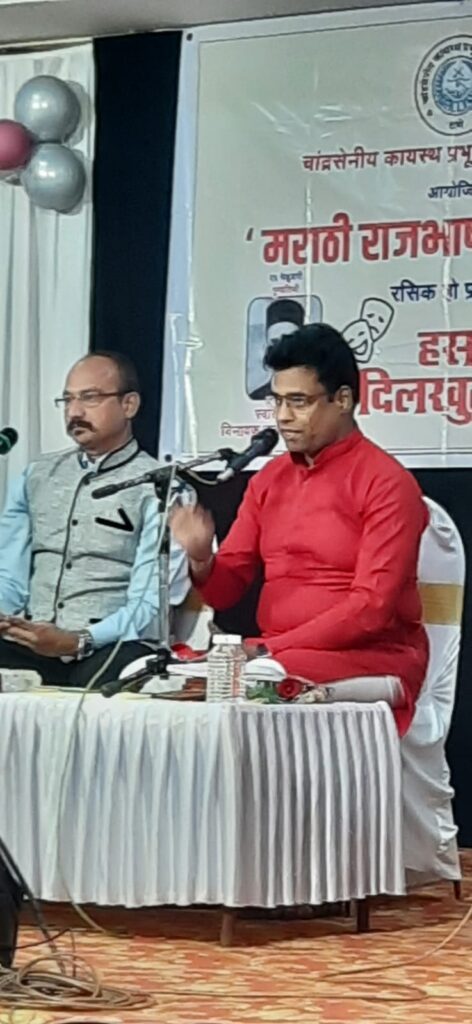 मराठी राजभाषा गौरव दिनाच्या पूर्वसंध्येला ठाण्याच्या सीकेपी हॉलमध्ये पनवेलची रसिकहो प्रस्तुती आणि सीकेपी सोशल क्लब ठाणे यांच्या संयुक्त विद्यमाने हास्य कवितांच्या मैफिलीचे आयोजन करण्यात आले होते. हसा दिलखुलास असे शीर्षक घेत पाच कवींच्या कवितांनी हास्य वर्षावात ठाणेकरांना चिंब भिजवले.ठाण्यातील रसिक प्रेक्षकांचा या कार्यक्रमाला उत्स्फूर्त प्रतिसाद लाभला. चंद्रसेनिय कायस्थ प्रभू सोशल क्लब, ठाणे यांनी मराठी राजभाषा गौरव दिनाच्या पूर्वसंध्येला हास्य कवितांच्या मैफिलीचे आयोजन केले होते. यामध्ये पनवेल ची रसिकहो प्रस्तुती या संस्थेचे आशिष चौबळ,नाना फडणीस,मंदार दोंदे,संपदा देशपांडे आणि योगेश राजे यांनी स्वरचित हास्य कविता सादर केल्या. या काव्य सादरीकरणात स्मित हास्य ते गडगडाटी हास्यकल्लोळ उपस्थितांनी अनुभवला. कार्यक्रमाच्या सुरुवातीला मुख्य आयोजक ज्योती टिपणीस यांनी प्रास्ताविक सादर केले. ज्यांच्या जन्मदिनानिमित्त मराठी राजभाषा गौरव दिन साजरा केला जातो असे विष्णू वामन शिरवाडकर आणि 26 फेब्रुवारी रोजी देह त्याग करणारे तात्याराव अर्थात स्वातंत्र्यवीर विनायक दामोदर सावरकर यांच्या स्मृतिदिनानिमित्त या दिग्गज द्वईंना विनम्र अभिवादन करण्यात आले. त्यानंतर कार्याध्यक्ष अतुल फणसे यांनी आपल्या मनोगतातून चांद्रसेनिय कायस्थ प्रभू सोशल क्लब करत असलेल्या उपक्रमांबाबत उपस्थितांना अवगत केले, तसेच पूर्वसंध्येला कार्यक्रम आयोजित करण्यापाठीमागची भूमिका विषद केली.तत्पूर्वी प्रमुख अतिथींच्या शुभहस्ते दीप प्रज्वलनाने सोहळ्यास प्रारंभ झाला. सुजाता पाणसरे यांच्या खुमासदार शैलीतील निवेदनाने कार्यक्रमाला वैशिष्ट्यपूर्ण कोंदण लाभले. कसलेल्या सलामी फलंदाजाच्या थाटात मंदार दोंदे यांनी दळिद्री बॉलीवूड ही कविता सादर करून दणक्यात सुरुवात केली. संपदा देशपांडे यांच्या जीव माझा गुंतला या गृहिणींच्या अंतरपटलात शिरून त्यांना खुदुखुदू हसायला लावणाऱ्या कवितेने धम्माल उडविली. विजय फडणीस उर्फ नाना यांच्या विस्की बियर आणि वाईन या कवितेने उपस्थित रसिकांना हास्याची झिंग चढली. अलवार कवितांच्या विश्वात सहज घेऊन जाण्याची खुबी असणारे आशिष चौबळ यांच्या नजरानजर कवितेने हास्य कारंज्या फुलविल्या. त्यानंतर विजय फडणीस यांची हुकलेली 9-12 ची लोकल ही कविता रसिका प्रेक्षकांना हास्याच्या प्लॅटफॉर्मवर घेऊन गेली. योगेश राजे यांनी सादर केलेल्या ती आणि शी या कवितेतील ट्विस्टने प्रेक्षकांनी हास्य गडगडाट अनुभवला. मंदार दोंदे यांच्या सस्पेन्स भरी प्रमोशन या कवितेने हास्य तुषार उडविले. आशिष चौबळ यांच्या मुठीतला मी कवितेने हसवता हसवता रसिक प्रेक्षकांच्या अंत