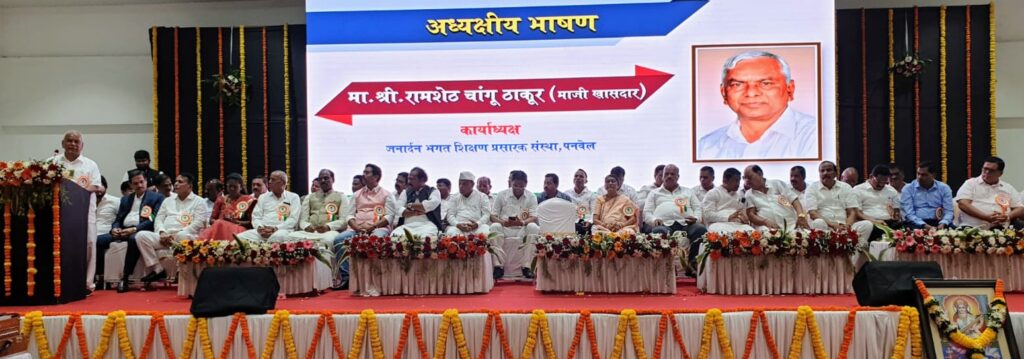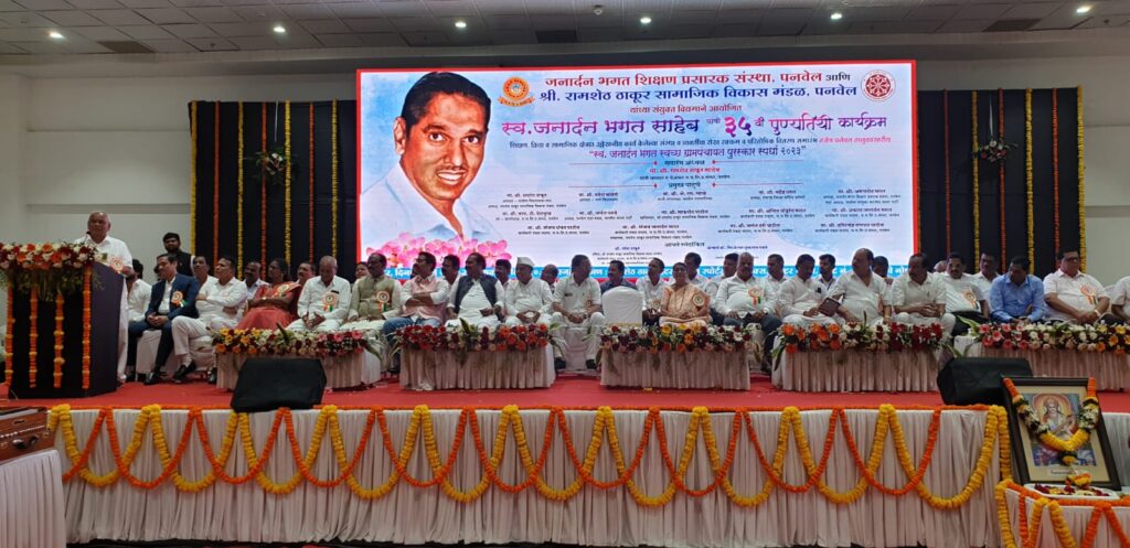 कष्टकऱ्यांचे द्रष्ट नेते थोर समाजसुधारक स्व. जनार्दन आत्माराम भगत यांच्या ३५ व्या पुण्यतिथी निमित्ताने जनार्दन भगत शिक्षण प्रसारक संस्था आणि श्री. रामशेठ ठाकूर सामाजिक विकास मंडळ यांच्या संयुक्त विद्यमाने शिक्षण, क्रीडा व सामाजिक क्षेत्रात उल्लेखनीय कार्य केलेल्या संस्था आणि व्यक्तींचा गुणगौरव तसेच पनवेल तालुकास्तरीय “स्व. जनार्दन भगत स्वच्छ ग्रामपंचायत पुरस्कार स्पर्धा २०२३” पारितोषिक वितरण समारंभ उलवे नोड मधील रामशेठ ठाकूर इंटरनॅशनल स्पोर्ट्स कॉम्प्लेक्स येथे समारंभपूर्वक पार पडला. तत्पूर्वी शेलघर येथे भगत साहेब निवासस्थानी भगत साहेबांच्या पवित्र स्मृतीस अभिवादन करण्यात आले.त्यावेळी समारंभाच्या अध्यक्ष स्थानावरून ते बोलत होते.