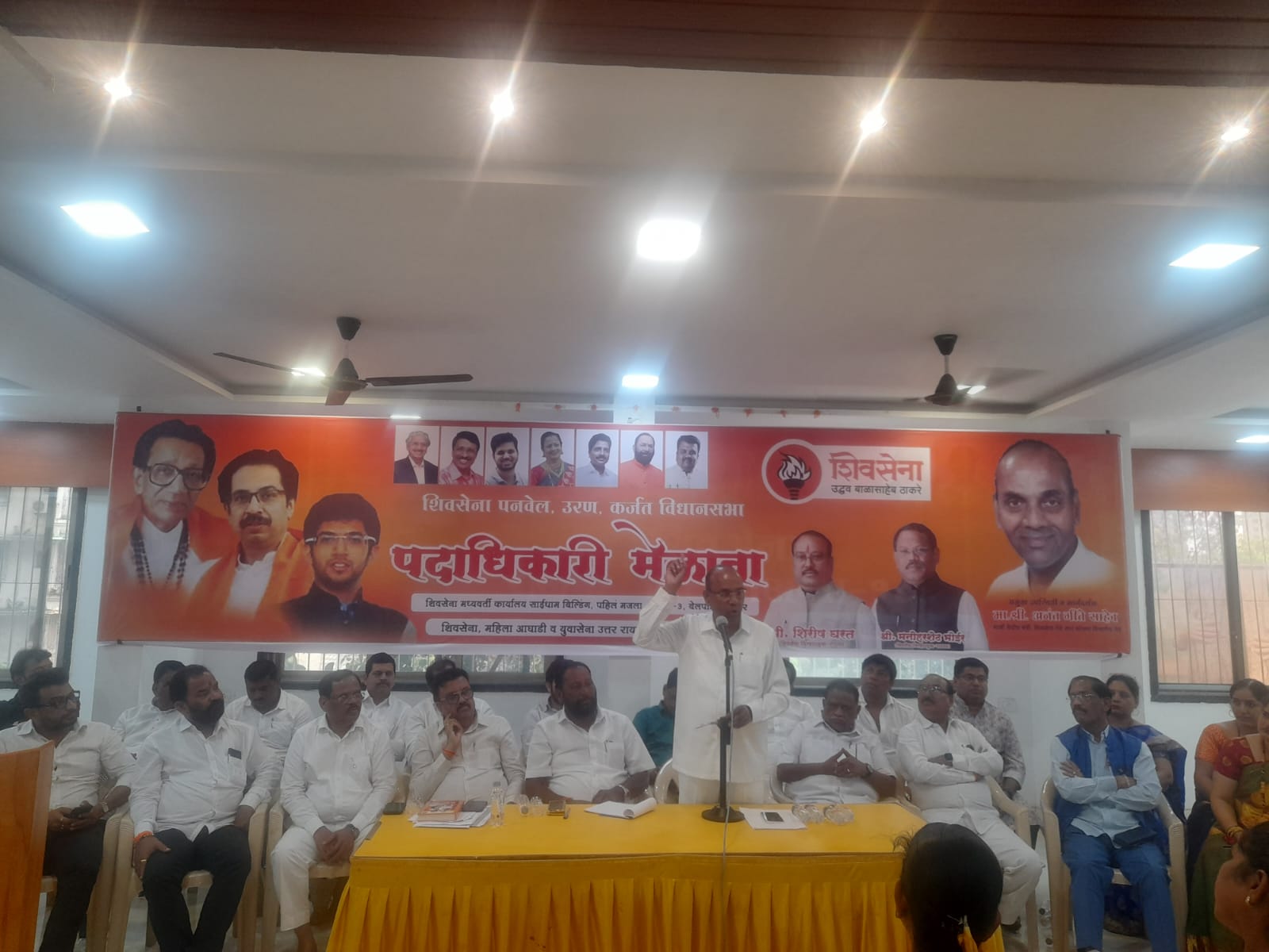 यावेळी व्यासपीठावर माजी केंद्रीय मंत्री, शिवसेना नेते मा.खासदार अनंत गीते यांच्यासह जिल्हा संपर्क प्रमुख बबनदादा पाटील, जिल्हा सहसंपर्क प्रमुख किशोर जैन, जिल्हाप्रमुख शिरीष घरत, जिल्हा प्रमुख मा आमदार मनोहर भोईर, जिल्हा प्रमुख सुरेंद्र म्हात्रे, जिल्हा समन्वयक अनिल चव्हाण, पनवेल विधानसभा समन्वयक वैभव सावंत, उपजिल्हा प्रमुख रामदास पाटील, भरत पाटील, नितीन सावंत, नरेश रहाळकर, महिला आघाडी प्रमुख सुवर्णा जोशी, तालुका संपर्कप्रमुख योगेश तांडेल, युवासेना रायगड जिल्हाधिकारी पराग मोहित, उपजिल्हा अधिकारी अवचित राऊत, दीपक घरत, प्रदीप ठाकूर, शशिकांत डोंगरे, तालुका प्रमुख ज्ञानेश्वर बडे, विश्वास पेटकर, रघुनाथ पाटील यांच्यासह उपजिल्हाप्रमुख ते उपविभागप्रमुखापर्यंत सर्व पदाधिकारी उपस्थित होते. यावेळी मार्गदर्शन करताना शिवसेना नेते अनंत गीते यांनी सांगितले की, गद्दारांच्या विरोधात पहिले रणशिंग हे खारघरमध्ये फुंकले गेले म्हणून आज येथे पदाधिकारी मेळाव्याचे आयोजन करण्यात आले आहे. माझ्यावर रायगड जिल्हयातील सहा व मावळ मतदार संघातील तीन अश्या नऊ आमदार व दोन खासदारांच्या निवडणुकीची जबाबदारी पक्ष प्रमुख उद्धव ठाकरे यांनी सोपवली आहे. या जबाबदारीची परत फेड नऊ आमदारांसह दोन खासदार निवडून आणून देणारच असा शब्द त्यांना मी दिला आहे. तो आपल्या साथीने मला शब्द पूर्ण करायचा आहे. त्यासाठी दिवसरात्र एक करून पक्ष वाढीसाठी सर्वानी काम केले पाहिजे. भाजपच्या प्रलोभनांना भुलून आत्ता जरी त्यांना मतदान होत असले तरी आगामी महाराष्ट्राच्या निवडणुकीमध्ये इंडियाचा विजय निश्चितच आहे. “होऊ द्या चर्चा” हा कार्यक्रम यशस्वी झाला त्यामुळे ग्रामपंचायती मोठ्या प्रमाणात आपण जिंकू शकलो आता होणारी लोकसभा तसेच पदवीधर निवडणूक असून ती गांभीर्याने घेऊनच आपल्याला एकत्रितपणे लढून जिंकायची आहे असे त्यांनी सांगितले. यावेळी उपस्थित इतर पदाधिकाऱ्यांनी सुद्धा मार्गदर्शन केले.