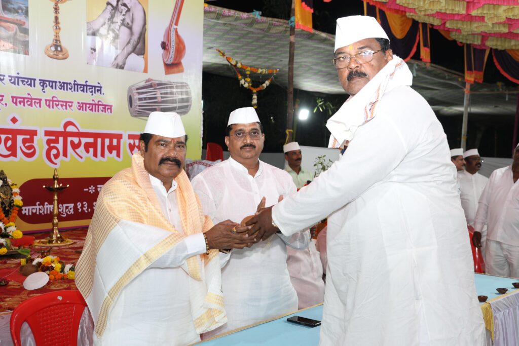 यावेळी माजी सरपंच तथा तालुका अध्यक्ष कृष्णा पारंगे, रायगड जिल्हा काँग्रेस युवक अध्यक्ष निखिल डवले,माजी सभापती कांचनताई पारंगे, देविदास म्हात्रे तसेच सांप्रदाय मंडळाचे पदाधिकारी उपस्थित होते.