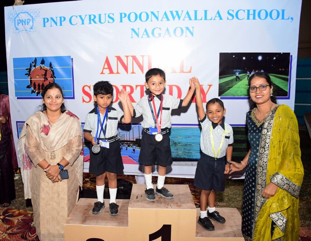 मुलांच्या गटात अंश निखिल मयेकर याने प्रथम, शुभ अनंत सिंग याने द्वितीय, तर वंश केतन पाटील याने तृतीय क्रमांक मिळविला. पोहण्याच्या स्पर्धेत गट क्रमांक दोनमध्ये मुलींमध्ये विश्वा कांबळी, त्विशा प्रधान काश्वी बुरांडे यांनी अनुक्रमे प्रथम, द्वीतीय व तृतीय क्रमांक मिळविला. मुलांमध्ये अर्णव मगर, अथर्व घरत, श्रीमत म्हात्रे यांनी अनुक्रमे प्रथम, द्वीतीय व तृतीय क्रमांक मिळविला. पोहण्याच्या स्पर्धेमध्ये तिसऱ्या गटात मुलींमध्ये आर्या भोईर याने प्रथम, काव्या भगत हीने द्वितीय क्रमांक मिळविला. मुलांमध्ये रुद्र नाखवा याने प्रथम, आर्यन पाटील याने द्वितीय, शंतनू कवळे याने तृतीय क्रमांक मिळविला. फुटबॉल, बास्केट बॉल व लंगडी स्पर्धेत ही यश संपादन केले. या सर्व विद्यार्थ्यांना मान्यवरांच्या हस्ते बक्षीस देऊन सन्मानित करण्यात आले.