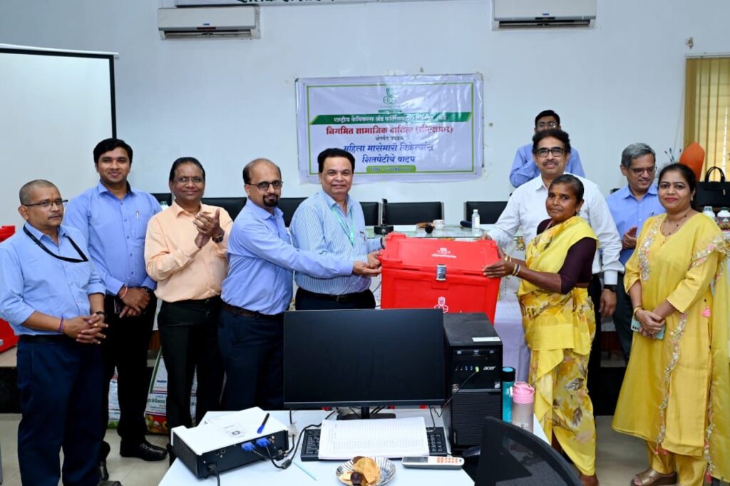 राष्ट्रीय केमिकल्स अँड फर्टीलायझर्स (आरसीएफ) निमिटेड, थळ तर्फे निगमित सामाजिक दायित्व (सीएसआर) अंतर्गत कारखाना परिसरातील थळ मच्छीमार महिलांना शीतपेट्यांचे वाटप करण्यात आले. सोमवार दिनांक २३ डिसेंबर २०२४ रोजी दुपारी ४.०० वाजता कारखान्यालगतच्या शेतकरी प्रशिक्षण केंद्रात आयोजित एका कार्यक्रमात कार्यकारी संचालक (थळ) नितिन हिरडे आणि महाव्यवस्थापक संजीव हरळीकर यांच्या शुभहस्ते हे वाटप करण्यात आले.