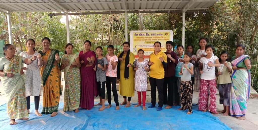गेल इंडिया लिमिटेड, उसर यांच्यावतीने उसर गावातील महिला व मुलींसाठी पाच दिवसीय मोफत स्वसंरक्षण स्वयंसिद्धा प्रशिक्षण शिबिराचे आयोजन अनुप गुप्ता – मुख्य महाप्रबंधक पीडीएचपीपी प्रोजेक्ट गेल उसर व जितिन सक्सेना – महाप्रबंधक, शितल लाकरा – मुख्य प्रबंधक यांच्या प्रमुख मार्गदर्शनाखाली करण्यात आले असून सदर प्रशिक्षण शिबिराचे उद्घाटन अश्विनी दिनेश शिंदे- पोलीस पाटील उसर, शशिकला धसाडे- पोलीस पाटील, कुणे यांच्या हस्ते करण्यात आले. यावेळी या कार्यक्रमास आंतरराष्ट्रीय खेळाडू तथा प्रिझम संस्थेच्या अध्यक्षा तपस्वी नंदकुमार गोंधळी, अर्चना देवेंद्र शिंदे अध्यक्षा आई एकविरा महिला बचत गट,उसर, मिताली अमोद शिंदे- आई एकविरा महिला बचत गट उसर, प्रियांका शैलेंद्र शिंदे -उपाध्यक्ष, ग्रामस्थ अस्मिता अशोक शिंदे, प्रणाली गणेश दमामे, तन्वी विनय शिंदे, विजया विलास शिंदे, प्रशिक्षिका निकी बेंडे, प्रणाली तळेगावकर, हर्षाली नागावकर, वेदिका लाडगे व प्रशिक्षणार्थी उपस्थित होते.