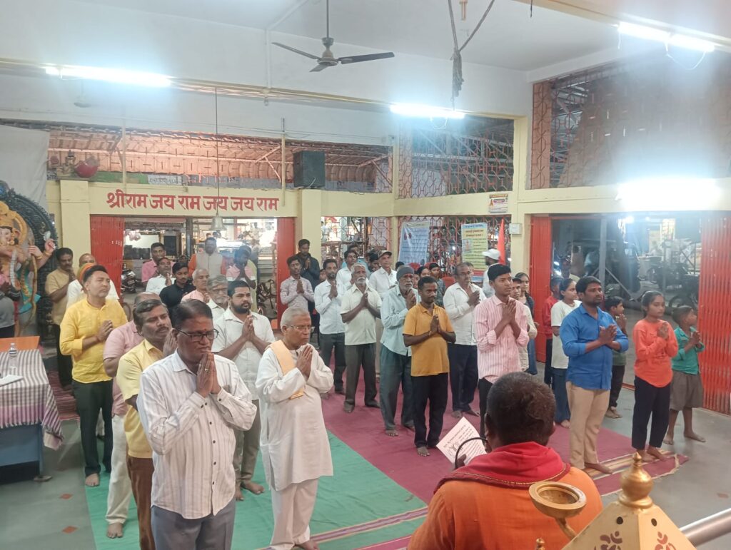 सोलापूर येथील श्री वैष्णव मारुती देवस्थान, जुने घरकुल या ठिकाणी महाराष्ट्र मंदिर महासंघ आणि श्री वैष्णव मारुती देवस्थान यांच्या संयुक्त विद्यमाने ‘सामूहिक आरती’ करण्यात आली. या वेळी मंदिर महासंघाचे राष्ट्रीय संघटक श्री. सुनील घनवट, श्री वैष्णव मारुती देवस्थानचे अध्यक्ष श्री. भास्कर राऊळ, विश्वस्त श्री. दीपक परदेशी, श्री. नारायण दुभाषी, श्री. रामकृष्ण सुंचू, श्रीनिवास कोत्तायम, श्रीगणेश मंदिराचे अध्यक्ष श्री. वेणूगोपाल म्याना, श्री चौडेश्वरी मंदिराचे पुजारी श्री. गोवर्धन म्याकल, पद्माशाली पुरोहित संघटनेचे सदस्य श्री. व्यंकटेश जिल्ला, श्री परमेश्वरी देवस्थानचे पुजारी श्री. विठ्ठल पांढरे, हिंदुत्वनिष्ठ श्री. विजय इप्पाकायल, श्री. धन्यकुमार चिंदे, महाराष्ट्र मंदिर महासंघाचे श्री. विनोद रसाळ, हिंदु जनजागृती समितीचे श्री. संकेत पिसाळ, श्री. गौरीशंकर कलशेट्टी, श्री. धनंजय बोकडे आणि श्री. बालराज दोंतुल यांच्यासह मोठ्या संख्येने भाविक उपस्थित होते.