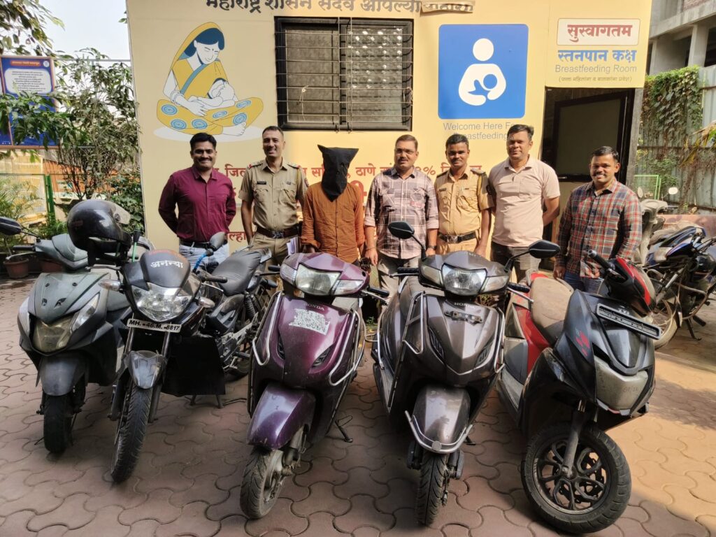पनवेल परिसरातून ३ मोटारसायकली तसेच तुर्भे व सीबीडी परिसरातुन मोटारसायकल चोरीस गेल्याची घटना घडली. याबाबत पनवेल शहर पोलीस ठाण्यात गुन्हा दाखल होताच वरिष्ठ पोलीस निरीक्षक नितीन ठाकरे यांच्या मार्गदर्शनाखाली पो.उप.नि. विनोद लभडे, पोहवा नितीन वाघमारे, पोहवा अविनाश गंथडे, पोहवा अमोल डोईफोडे, पोहवा परेश म्हात्रे, पोहवा महेंद्र वायकर, पोना विनोद देशमुख, पोशि चंद्रशेखर चौधरी आदींच्या पथकाने गुप्त बातमीदार व तांत्रिक तपासाच्या आधारे सराईत आरोपी अजयलाल कौल (वय ३० वर्षे, रा. करंजाडे) याला ताब्यात घेतले असून त्याच्याकडून १ लाख ५ हजार रुपये किमतीच्या ५ मोटारसायकल हस्तगत केले. याच्या अटकेमुळे इतरही वाहनचोरीचे गुन्हे उघडकीस होण्याची शक्यता वर्तवण्यात येत आहे.