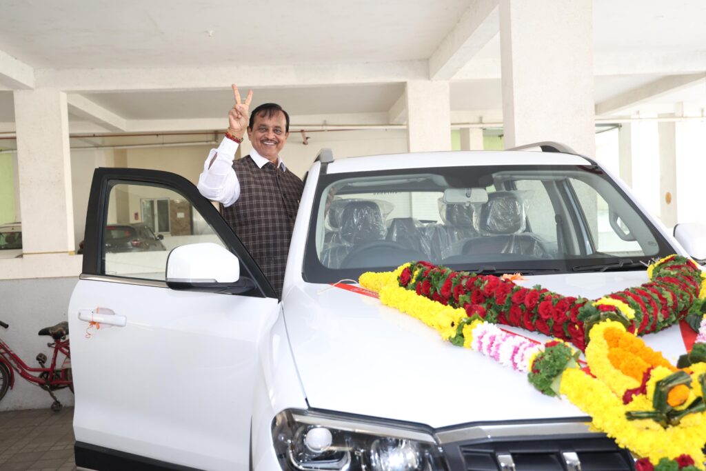 माळी साहेबांच्या हस्ते उलवे येथे गाडीचे पूजन करून जिल्हाध्यक्ष महेंद्रशेठ घरत यांनी त्यांना गाडीच्या चाव्या सुपूर्द केल्या. यावेळी आपल्या भावना व्यक्त करतांना माळी साहेब म्हणाले की महेंद्रशेठ घरत म्हणजे ओबीसी समाजासाठी भूषण आहेत.त्यांच्या सारखा दानशूर नेता ओबीसी समाजाचं नेतृत्व करत आहेत हे आपल्या समाजासाठी अभिमानाची गोष्ट आहे. त्यांच्यासारख्या नेत्याची महाराष्ट्र काँग्रेसला गरज आहे. येणाऱ्या काळात महाराष्ट्रात काँग्रेसला नवसंजीवनी द्यायची असेल तर महेंद्रशेठ घरत यांनी भविष्यात महाराष्ट्राचे नेतृत्व करावे अशी भावना त्यांनी व्यक्त केली. यावेळी महेंद्रशेठ घरत यांचे सहकारी व काँग्रेस कार्यकर्ते मोठया संख्येने उपस्थित होते.