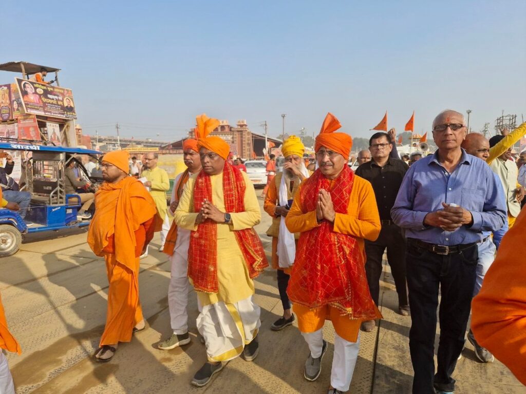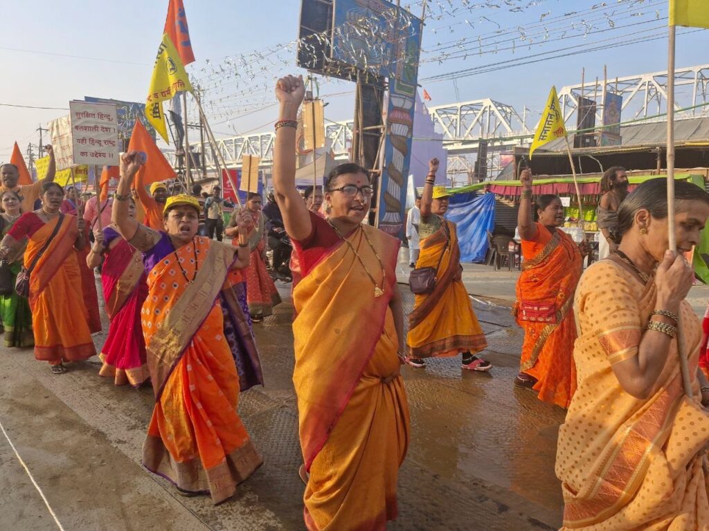 प्रयागराज – अयोध्या येथे भव्य श्रीराम मंदिरात श्रीरामलल्लाच्या प्राणप्रतिष्ठेला २२ जानेवारी २०२५ रोजी एक वर्ष पूर्ण झाले आहे. या शुभप्रसंगी हिंदु जनजागृती समितीच्या वतीने कुंभक्षेत्रात भव्य ‘हिंदु एकता पदयात्रा’ काढण्यात आली. महाकुंभ क्षेत्रातून विश्वकल्याणकारी रामराज्य अर्थात् हिंदु राष्ट्र स्थापनेचा आवाज बुलंद करण्यासाठी या पदयात्रेद्वारे संदेश देण्यात आला. या पदयात्रेत हिंदु राष्ट्र स्थापनेचे प्रेरणास्त्रोत आणि सनातन संस्थेचे संस्थापक सच्चिदानंद परब्रह्म डॉ. जयंत बाळाजी आठवले यांच्या आध्यात्मिक उत्तराधिकारी श्रीसत्शक्ति (सौ.) बिंदा सिंगबाळ तथा श्रीसत्शक्ति (सौ.) अंजली गाडगीळ, हिंदु जनजागृती समितीचे राष्ट्रीय मार्गदर्शक सद्गुरु (डॉ.) चारुदत्त पिंगळे, आणि हिंदु जनजागृती समितीचे उत्तर-पूर्व भारताचे मार्गदर्शक सद्गुरु नीलेश सिंगबाळ यांची वंदनीय उपस्थिती होती. तसेच आध्यात्मिक संस्था, हिंदू संघटना, अलाहाबाद उच्च न्यायालयाचे अधिवक्ता, हिंदुत्वनिष्ठ आणि भाविक सहभागी मोठ्या संख्येने झाले होते.
