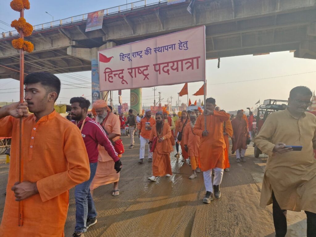 या वेळी हिंदु जनजागृती समितीचे राष्ट्रीय मार्गदर्शक सद्गुरु (डॉ.) चारुदत्त पिंगळे म्हणाले की, हिंदु धर्म ‘वसुधैव कुटुंबकम्’ची शिकवण देतो. अशा धर्माला संविधानाद्वारे अधिकृत संरक्षण मिळण्यासाठी भारताला हिंदु राष्ट्र घोषित करणे आवश्यक आहे. ही मागणी विश्वकल्याणासाठी कार्यरत असलेल्या हिंदु संस्कृतीला जिवंत ठेवण्यासाठी आहे. महाकुंभक्षेत्राकडे पूर्ण जगाचे लक्ष आहे. त्यामुळे या पदयात्रेच्या माध्यमातून हिंदु संत, महंत, देश-विदेशातील हिंदु समाज यांच्या मनातील हिंदु राष्ट्राची मागणी अाम्ही सरकारपर्यंत पोचवण्याचा प्रयत्न करत आहोत. संतांच्या सान्निध्यात कुंभसारख्या महत्त्वपूर्ण पर्वावर प्रयागराजसारख्या धार्मिक नगरीत केलेली हिंदु राष्ट्राची मागणी लवकरच फलद्रुप होईल, अशी आमची श्रद्धा आहे. या वेळी ‘विश्वकल्याणासाठी भारतात हिंदु राष्ट्राची स्थापना व्हावी’, यासाठी पदयात्रेच्या शेवटी कुंभस्थित देवता आणि ऋषीमुनी यांच्या चरणी सामूहिक प्रार्थना करण्यात आली.