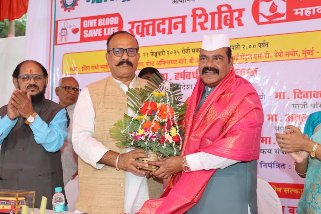 मुंबईतील बीआयटी चाळ येथील मैदानात रक्तदान शिबिर शुक्रवारी (21) झाले. त्यावेळी महाराष्ट्र एस. टी. काँग्रेसचे सरचिटणीस श्रीरंग बरगे यांच्या पुढाकाराने झालेल्या रक्तदान शिबिराला उत्तम प्रतिसाद मिळाला.