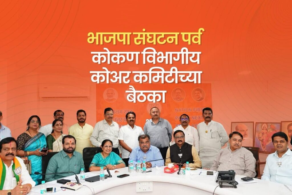 पनवेल (प्रतिनिधी) महाराष्ट्र प्रदेश भाजपच्या वतीने हाती घेण्यात आलेल्या ‘संघटन पर्व’ अभियानांतर्गत मंडल अध्यक्ष निवडणूक प्रक्रियेच्या अनुषंगाने कोकण विभागातील जिल्हा कोअर समिती सदस्यांच्या स्वतंत्र बैठका आज राष्ट्रीय महासचिव अरुण सिंह आणि प्रदेश कार्यकारी अध्यक्ष रवींद्र चव्हाण यांच्या प्रमुख उपस्थितीत मुंबईतील भाजप प्रदेश कार्यालयात संपन्न झाल्या. यामध्ये रायगड दक्षिण, रायगड उत्तर, रत्नागिरी उत्तर, रत्नागिरी दक्षिण, सिंधुदुर्ग, भिवंडी, ठाणे शहर, उल्हासनगर या विभागांचा समावेश होता.या बैठकीच्या अनुषंगाने आगामी दोन दिवसात भाजपच्या मंडल अध्यक्ष निवड जाहीर करण्यात येणार आहे.