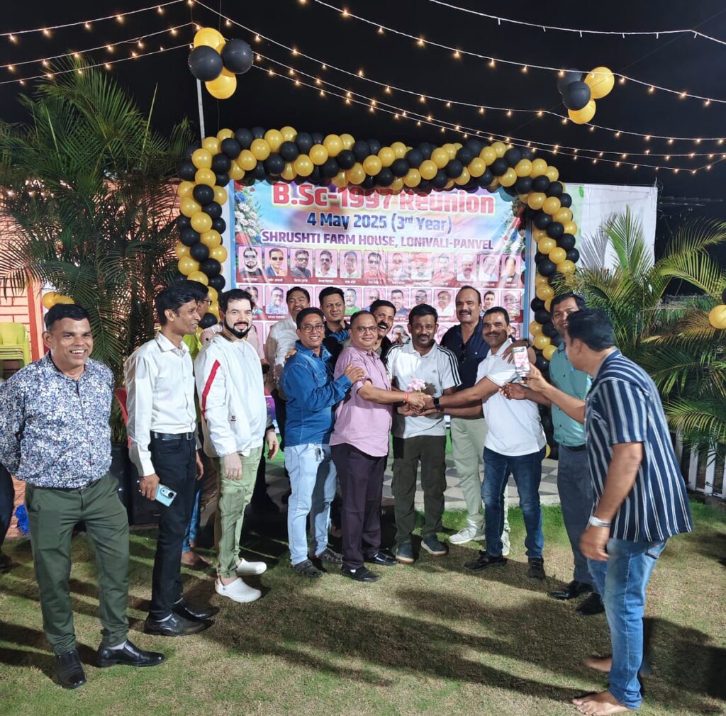समीर आंबवणे, किसन खारके, राजेश हुद्दार, शिवाजी चव्हाण, दत्तात्रय म्हात्रे, भालचंद्र गवंडी, नंदकुमार मुंबईकर, प्रशांत पाटील, विजय खिल्लारे उदय शेळके, रमेश तुपे, डि.के.माळी,दीपक डाऊर, गुरुनाथ वालीलकर, आनंद जीतेकर, मंदार दोंदे, अनिल गोंधळी, नंदकुमार म्हात्रे, गणेश भोईर, कृष्णा म्हात्रे, धनंजय कवाडकर, सचिन देशमुख, योगेश वाणी, बाळकृष्ण पाटील, जीवन माळी, रमेश पाटील, रवी म्हात्रे, सुनील पवार,विनोद तारेकर, विनोद पाटील, सुशीलकांत तारेकर, तुषार यादव, नरेश खुटले,गुरुदत्त कांबळे,नरेश मुसळे, सागर खुटले,नाना भोईर, संतोष चौधरी, सचिन केणी, गणेश घरत आदींनी मित्रमेळ्याचा आनंद लुटला. सगळ्या मित्रांना एकत्र आणून अप्रतिम नियोजन करणाऱ्या टीमचे सगळ्यांनी मुक्तकंठाने कौतुक केले. त्यानंतर सुग्रास शाकाहारी आणि झणझणीत मांसाहारी भोजनाच्या सोबत खुमासदार गप्पा असे डेडली कॉम्बिनेशन सगळ्यांनी अनुभवले. पुढचे गेट-टुगेदर आणखीन दणक्यात करायचे असे ठरवून बीएससी ९७ बॅचमेट्स आपापल्या निवासी मार्गस्थ झाले.