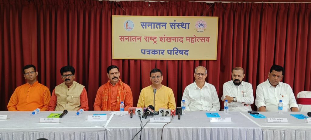 पणजी (गोवा) – १७ ते १९ मे २०२५ या कालावधीत सनातन संस्थेच्या वतीने फर्मागुडी, फोंडा येथील गोवा अभियांत्रिकी महाविद्यालयाच्या मैदानावर होणारा ‘सनातन राष्ट्र शंखनाद महोत्सव’ हा केवळ धार्मिक नव्हे, तर आंतरराष्ट्रीय स्तरावरील आध्यात्मिक जागृतीचा महोत्सव ठरणार आहे. २३ देशांतील प्रतिष्ठित मान्यवर, विविध संप्रदायांचे संत-महंत, मंदिरांचे विश्वस्त आणि २५ हजारांहून अधिक साधक, भाविक यांचा सहभाग अन् यज्ञयागामुळे हा महोत्सव काशी, उज्जैन, अयोध्येप्रमाणे आध्यात्मिक पर्यटनाचा नवा अध्याय असणार आहे, त्यामुळे विकासालाही गती मिळणार आहे, अशी माहिती सनातन संस्थेचे राष्ट्रीय प्रवक्ते श्री. चेतन राजहंस यांनी आज पणजी येथील पत्रकार परिषदेत दिली.