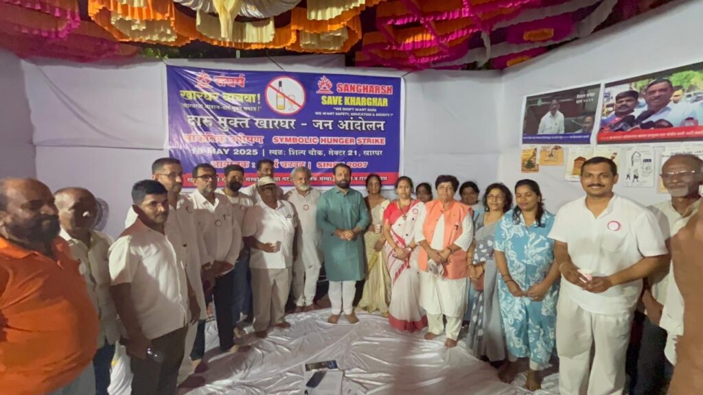 मात्र, मागील काही महिन्यांपासून पुन्हा एकदा काही मंडळी दारू विक्रीचे परवाने मिळवण्यासाठी सक्रिय झाल्याचे निदर्शनास आले आहे. त्यामुळे खारघर संघर्ष समितीच्या वतीने काल शिल्प चौक, खारघर येथे एक दिवसीय लाक्षणिक उपोषण करण्यात आले. या उपोषणाला परिसरातील नागरिक, सामाजिक संस्था व विविध संघटनांनी उपोषण स्थळावर जाऊन उपोषणकर्त्यांना पाठिंबा दिला.