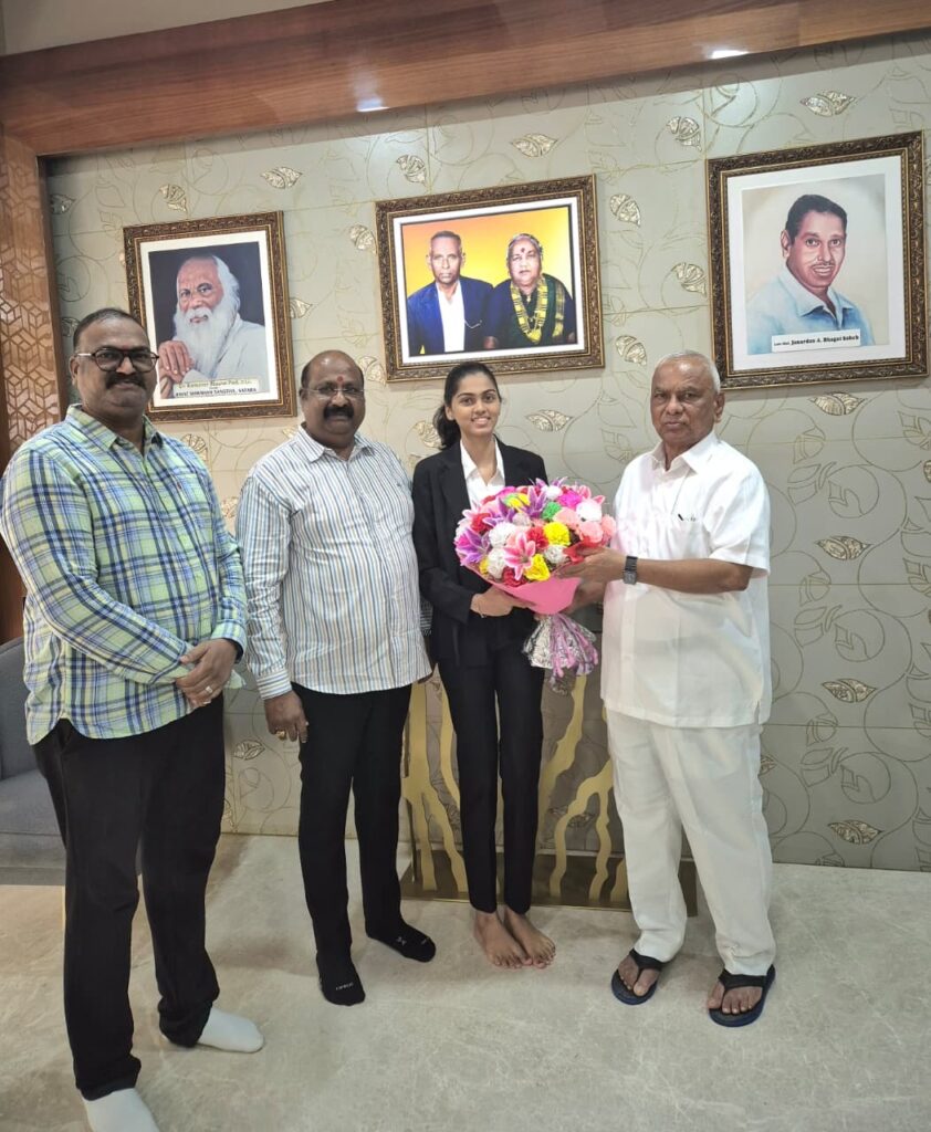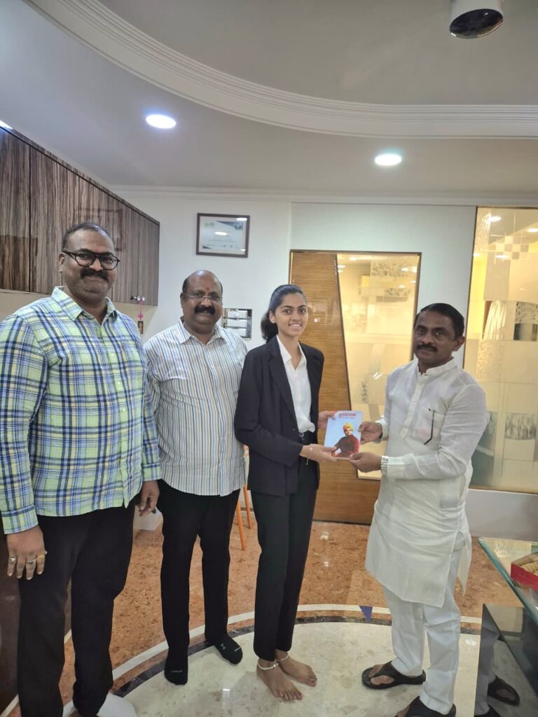 कार्मेल कॉन्व्हेंट हायस्कुल, कळम्बोली ची विध्यार्थिनी कु.कनिष्का गणेश गायकर हि दहावी बोर्डाच्या परीक्षेत 98.4 % गुण मिळवून उत्तीर्ण झाली.आदरणीय लोकनेते मा. खासदार रामशेठ ठाकूर साहेब आणि कार्यसम्राट आमदार प्रशांत दादा ठाकूर यांनी आज तिचे अभिनंदन करीत तिच्या पुढील शिक्षणाविषयी माहिती घेत तिला भरभरून शुभेच्छा दिल्या.याप्रसंगी ओबीसी जिल्हा अध्यक्ष राजेश गायकर, कनिष्काचे वडील गणेश गायकर उपस्थित होते.