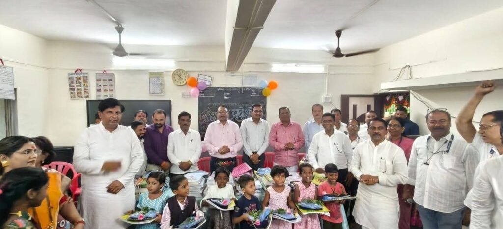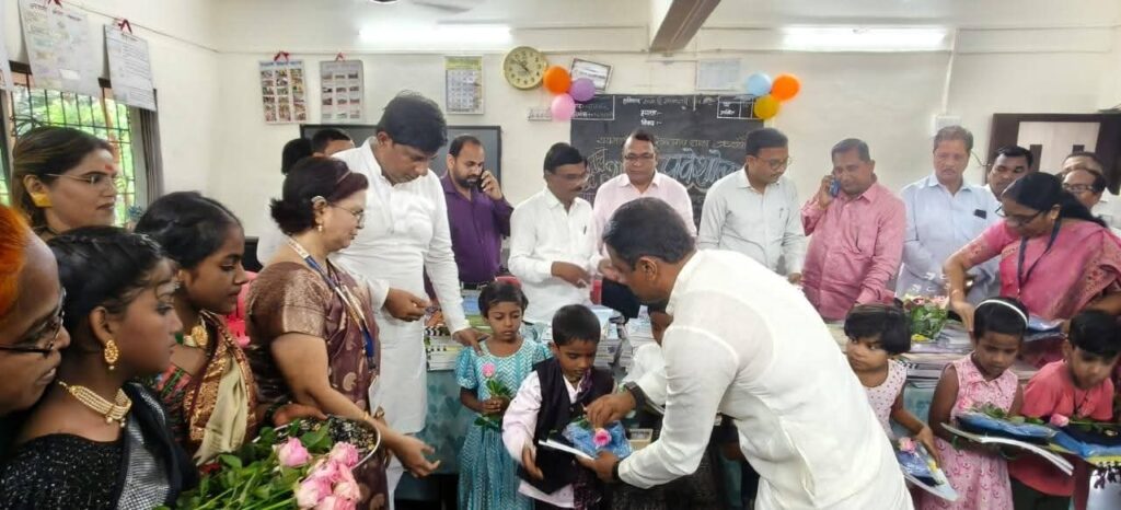 आज नवीन शैक्षणिक वर्षासाठी विद्यार्थ्यांनी प्रवेश केला असून दरम्यान रायगड जिल्हा परिषद कळंबोली प्राथमिक शाळेतील सर्व विद्यार्थ्यांचे लोकप्रिय आमदार प्रशांत ठाकूर यांनी स्वागत करत सर्व विद्यार्थ्यांना पुढील वाटचालीसाठी शुभेच्छा दिल्या. तसेच यावेळी विद्यार्थ्यांना मोफत पाठ्यपुस्तक व मोफत गणवेशाचे वाटप करण्यात आले. या कार्यक्रमाला माजी नगरसेवक गोपाळ भगत, रविंद्र भगत, विजय खानावकर, राजेंद्र शर्मा, कळंबोली भाजपचे माजी अध्यक्ष रविनाथ पाटील, शाळा व्यवस्थापक संस्थेचे अध्यक्ष अनंत भगत व इतर मान्यवर उपस्थित होते.