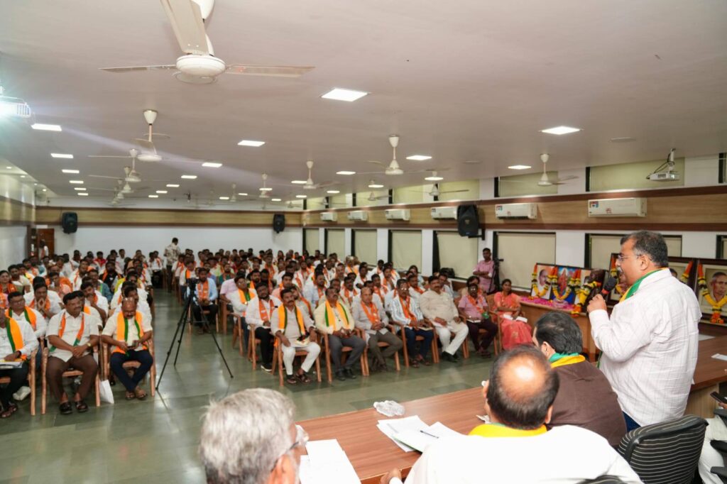 पनवेल (प्रतिनिधी) गेल्या ११ वर्षांतील मोदी सरकारच्या कार्यकाळात भारताने विकास, आत्मनिर्भरता आणि जागतिक नेतृत्वाच्या दिशेने भक्कम पावले टाकली आहेत. ‘संकल्प से सिद्धि तक’ या प्रेरणादायी संकल्पनेवर आधारित, केंद्र सरकारच्या यशस्वी कामगिरीचा लेखाजोखा महाराष्ट्रातील प्रत्येक घरापर्यंत पोहोचवण्याचा संकल्प भाजपा महाराष्ट्र प्रदेशने हाती घेतला आहे. या अभियानाच्या अनुषंगाने ठाणे-कोकण विभागीय आढावा बैठक प्रदेश कार्याध्यक्ष रविंद्र चव्हाण यांच्या प्रमुख उपस्थितीत खांदा कॉलनी मधील सीकेटी महाविद्यालयात संपन्न झाली. या बैठकीत कोकणातील संघटनात्मक बांधणी, बूथ पातळीवरील व्यवस्थापन तसेच लोकांपर्यंत प्रभावीपणे संवाद साधण्याच्या रणनीतीवर सखोल चर्चा झाली.