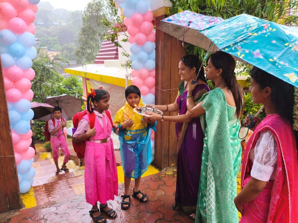 शाळा प्रवेशोत्सव म्हणजे केवळ स्वागत समारंभ नव्हे तर त्या विद्यार्थ्याला ,पालकाला आणि शिक्षकाला एक सशक्त शैक्षणिक वातावरणात सामील करून घेण्याची सुंदर परंपरा आहे .या दिवशी मुलांचे मनोबल वाढवण्यासाठी शिक्षणात रस, आवड निर्माण करण्यासाठी आणि शाळेविषयी आत्मीयता निर्माण करण्यासाठी शाळेमध्ये विविध उपक्रमांचे आयोजन करण्यात आले होते. सकाळी प्रथम प्रवेश करणाऱ्या विद्यार्थ्यांचे औक्षण करण्यात आले. विद्यार्थ्यांना पुष्पगुच्छ देऊन स्वागत केले गेले.