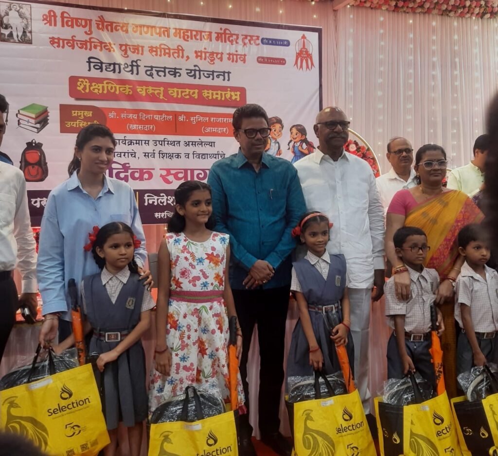मुंबई(पी . डी. पाटील) : श्री विष्णू चैतन्य गणपत महाराज मंदिर ट्रस्ट, भांडुप आणि सार्वजनिक पूजा समिती, भांडूपगाव यांच्या संयुक्त विद्यमाने नुकताच (दि. २०जून, २०२५रोजी) स्व. दीना बामा पाटील रंगमंच, भांडुपगाव येथे शैक्षणिक साहित्य व शालेय फीचे वाटप संस्थेचे अध्यक्ष ज्येष्ठ कामगार नेते परशुराम कोपरकर यांच्या हस्ते पार पडला.
