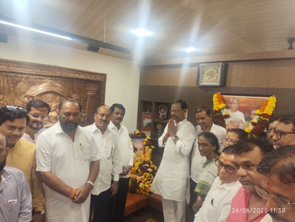 पनवेल दि . २४ ( वार्ताहर ) : लोकनेते दि. बा. पाटील यांच्या पनवेल येथील संग्राम या निवासस्थानी जाऊन आज लोकनेते दि. बा. पाटील यांच्या प्रतिमेला पुष्पगुच्छ वाहून महाविकास आघाडीतर्फे आदरांजली वाहण्यात आली .