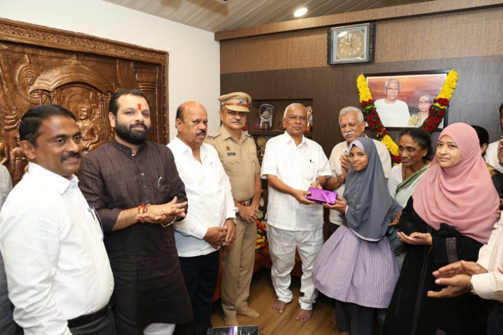 माजी खासदार लोकनेते रामशेठ ठाकूर , आमदार प्रशांत ठाकूर , आमदार विक्रांत पाटील ,भाजपा नेते जे. एम म्हात्रे आदी मान्यवरांच्या हस्ते पनवेल एज्युकेशन सोसायटीतील सहावीच्या इयत्तेत शिकणारी विद्यार्थिनी सनम अजीज खान हिला मोबाईल फोन भेट देण्यात आला . यावेळी पनवेल शहर पोलीस ठाण्याचे वरिष्ठ पोलीस निरीक्षक नितीन ठाकरे,शिक्षक असीम पटेल, माधव शेवाळे आदी मान्यवर यावेळी उपस्थित होते .