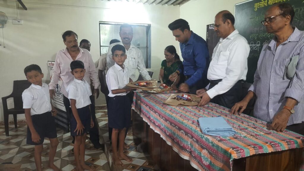ज्येष्ठ कामगार नेते परशुराम कोपरकर यांच्या सौजन्याने विद्यार्थ्यांना शैक्षणिक साहित्य व रेनकोट उपलब्ध करुन देण्यात आले. यावेळी राष्ट्र सेवा दलाचे विश्वस्त प्रा. जयवंत पाटील यांनी विद्यार्थ्यांना साने गुरुजींच्या गोष्टी सांगितल्या. प्रमुख पाहुणे म्हणून भावेश कोपरकर ह्यांच्या हस्ते विद्यार्थ्यांना शैक्षणिक साहित्य व रेनकोट यांचे वाटप करण्यात आले. संस्था प्रत्येक वर्षी आदिवासी विद्यार्थ्यांना शैक्षणिक साहित्य व रेनकोटचे वाटप करीत असते.