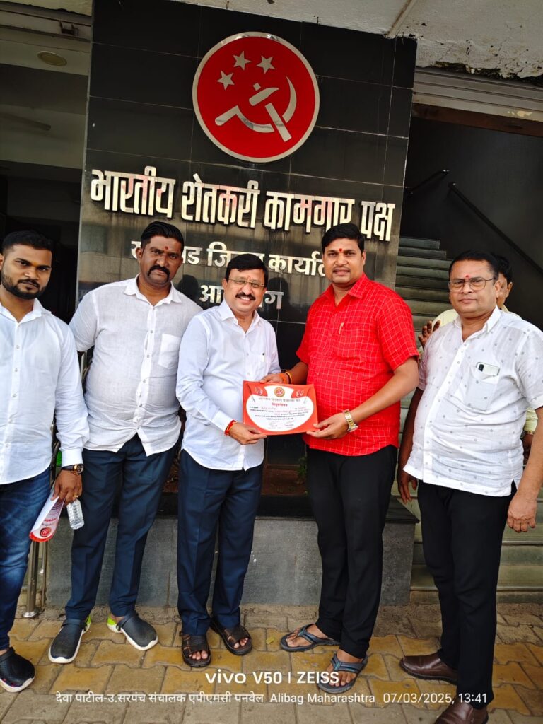 पनवेल कृषी उत्पन्न बाजार समितीचे संचालक व देवळोली ग्रामपंचायतीचे विद्यमान उपसरपंच देवेंद्र अनंत पाटील यांची भारतीय शेतकरी कामगार पक्षाच्या पुरोगामी युवक संघटनेच्या रायगड जिल्हा अध्यक्ष पदी फेरनिवड करण्यात आली.