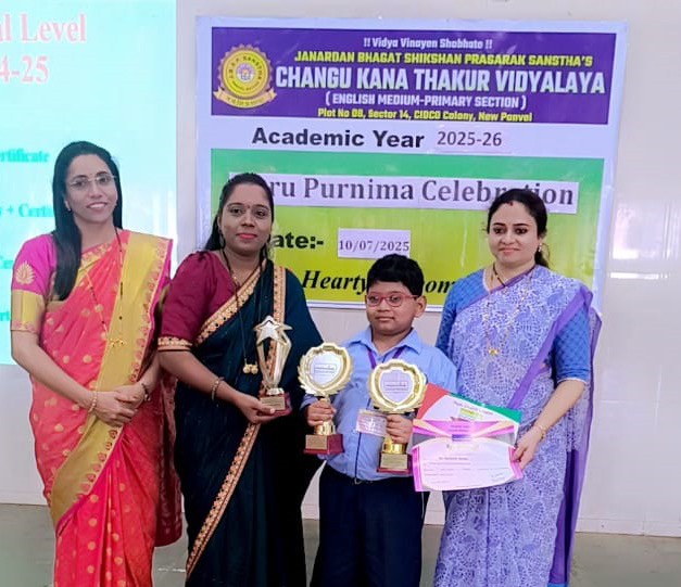 यावेळी गुरुप्रती आदर व्यक्त करत शाळेतील विद्यार्थ्यांनीही आपले मनोगत व्यक्त केले. या प्रसंगी, राज्यस्तरीय स्वच्छता मॉनिटर अभियानात मिळालेल्या घवघवीत यशाबद्दल वर्षा ठाकूर यांनी शाळेच्या मुख्याध्यापिका निलिमा शिंदे यांचे कौतुक केले. दरम्यान, मास्टरमाईंड, इंग्लिश मॅरेथॉन, ऑलिम्पियाड परीक्षा तसेच महाराष्ट्र प्रज्ञाशोध परीक्षेत राष्ट्रीय पातळीवर तसेच किक बॉक्सिंग चॅम्पियनशिप ऑल इंडिया डान्स स्पर्धेत राष्ट्रीय पातळीवरील प्रावीण्य मिळवलेल्या विजेत्याचे कौतुक करून त्यांना गौरविण्यात आले. या कार्यक्रमाला पालक प्रतिनिधी उपाध्यक्ष अनुराधा सुर्यवंशी, सचिव माधुरी धनावडे, मराठी माध्यम प्राथमिक विभागाचे मुख्याध्यापक सुभाष मानकर, इंग्रजी माध्यम माध्यमिक विभागाच्या पर्यवेक्षिका नीरजा अधुरी, पूर्व प्राथमिक विभागाच्या पर्यवेक्षिका वैशाली पारधी आदी उपस्थित होते.
