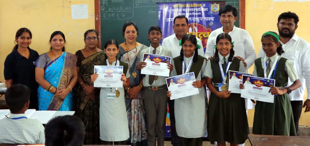 पनवेल (प्रतिनिधी) विद्यार्थ्यांमध्ये आत्मविश्वास वाढवणे, बोलण्याचे कौशल्य विकसित करणे आणि नव्या पिढीला नेतृत्वक्षम बनवणे, या उद्देशाने माजी सभागृहनेते परेश ठाकूर यांच्या नेतृत्वाखाली कार्यरत असलेल्या कोशिश फाऊंडेशन व पनवेल महानगरपालिका यांच्या संयुक्त विद्यमाने आयोजित कऱण्यात आलेल्या ‘आमदार प्रशांत ठाकूर चषक २०२५ वक्तृत्व’ स्पर्धेची वर्ग अंतर्गत फेरी कळंबोली येथील सुधागड एज्युकेशन सोसायटीचे माध्यमिक व उच्च माध्यमिक विद्यालयात मोठ्या उत्साहात पार पडली. या स्पर्धेत इयत्ता आठवी ते दहावीपर्यंतच्या विद्यार्थ्यांनी माझं कुटुंब, माझं स्वप्न, शिक्षणाचं महत्त्व, प्लास्टिक मुक्त भारत, इंटरनेट वरदान की शाप असे विचारांना चालना देणारे विषय निवडून प्रभावी भाषणं सादर केली. प्रत्येक विद्यार्थ्याने आपले विचार स्पष्ट, आत्मविश्वासपूर्वक आणि रसाळ शैलीत मांडले.