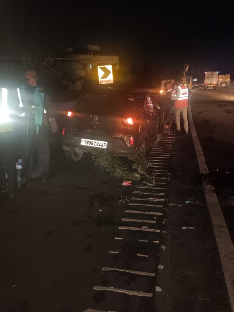 पनवेल जवळील अपघात ठिकाण व वेळ मुंबई – पुणे द्रुतगती महामार्गावर मुंबई लेनवर कि.मी.4/400 येथे खांदेश्वर पोलीस ठाण्याच्या हद्दीत गाडीचा टायर फुटून गाडीवरील नियंत्रण सुटल्याने गाडी पलटी होऊन झालेल्या अपघातात गाडीतील ५ जण जखमी झाल्याची घटना घडली आहे.