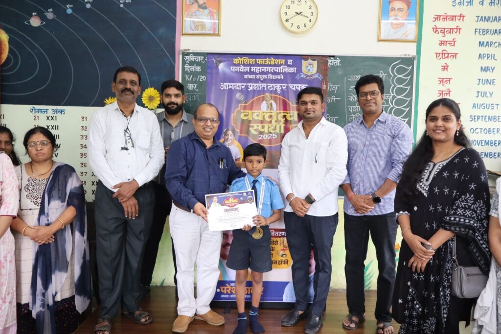 पनवेल (प्रतिनिधी) विद्यार्थ्यांमध्ये आत्मविश्वास निर्माण करणे, वक्तृत्वकौशल्य वाढवणे आणि सार्वजनिक व्यासपीठावर मोकळेपणाने बोलण्याची सवय लावणे या उद्देशाने आमदार प्रशांत ठाकूर चषक २०२५ वक्तृत्व स्पर्धेची वर्ग अंतर्गत फेरी पनवेल महानगरपालिका शाळा क्रमांक ०१ , ०२ आणि ०४ मध्ये मोठ्या उत्साहात पार पडली. कोशिश फाऊंडेशन आणि पनवेल महानगरपालिका यांच्या संयुक्त विद्यमाने आयोजित करण्यात आलेल्या या वक्तृत्व स्पर्धेला विविध शाळेतील उत्स्फूर्त प्रतिसाद लाभत आहे.