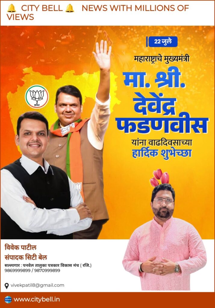 महाराष्ट्र राज्य देशाच्या शाश्वत प्रगतीचा गतीचक्र आहे. आणि या गतीला दिशा देणारे नेतृत्व म्हणून मुख्यमंत्री देवेंद्र फडणवीस सारथ्य करत आहेत. अचूक निर्णय क्षमता त्यांच्याकडे आहे. त्यामुळे कार्यकर्ता म्हणून त्यांचा प्रवास ‘राष्ट्रप्रथम’ या तत्वाशी एकनिष्ठ राहून संकल्पपूर्ण नेतृत्वात झाला आहे. त्यांच्या प्रत्येक निर्णयात सामान्य माणूस केंद्रबिंदू राहिला आहे. त्यामुळे कर्तव्यकठोर मुख्यमंत्री सर्वांचे लाडके देवाभाऊ आहेत. ते आपला वाढदिवस साध्या पद्धतीने साजरा करत आले असले तरी वाढदिनी सामाजिक उपक्रमे मोठ्या स्वरूपात आयोजित करून शुभेच्छा दिल्या जातात त्याच अनुषंगाने पनवेलमध्ये रक्तदान शिबिरांचे आयोजन करण्यात आले. महाराष्ट्राला पुढे नेण्याचे काम करत आहेत त्यामुळे ‘देवाभाऊ’ सर्वांचे लाडके नेते आहेत, महाराष्ट्राच्या आणि देशाच्या विकासासाठी त्यांना निरोगी उदंड आयुष्य लाभो, या वाढदिवसानिमित्त शुभेच्छा!